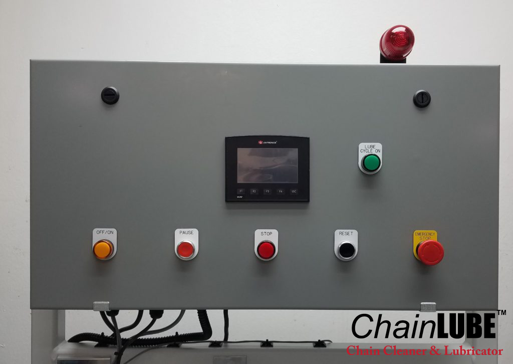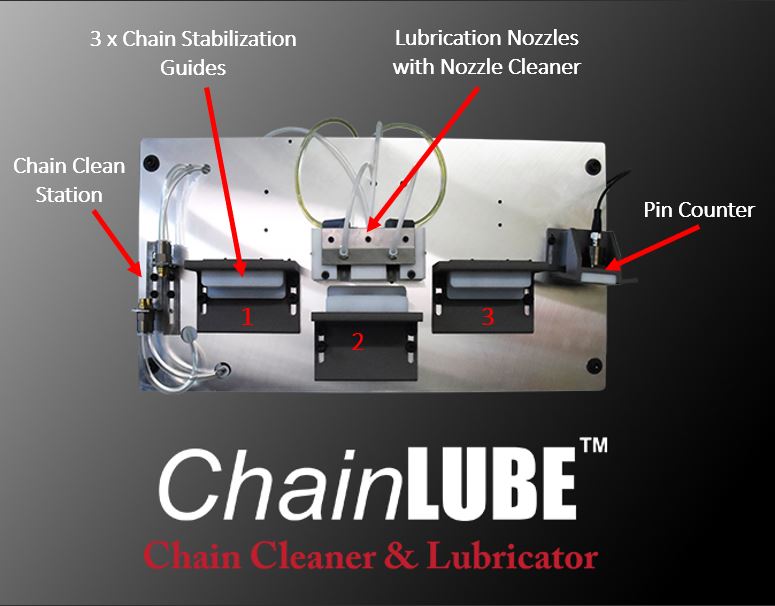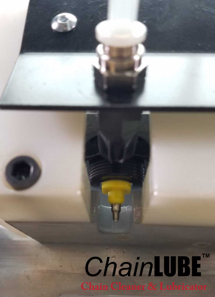 The ChainLUBE is an automated electrostatic pin-chain lubricator designed to be easily integrated onto new or existing pin ovens. The ChainLUBE has a built-in cleaning system that ensures lubrication is applied onto a clean pin-chain surface, avoiding over lubrication that can lead to metal exposure down the line. Two adjustable nozzles provide lubrication directly to the wear areas of the chain barrel. The pin-counter assures lubrication and cleaning cycles are times accurately and the entire chain is treated uniformly.