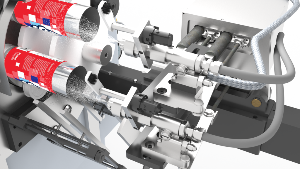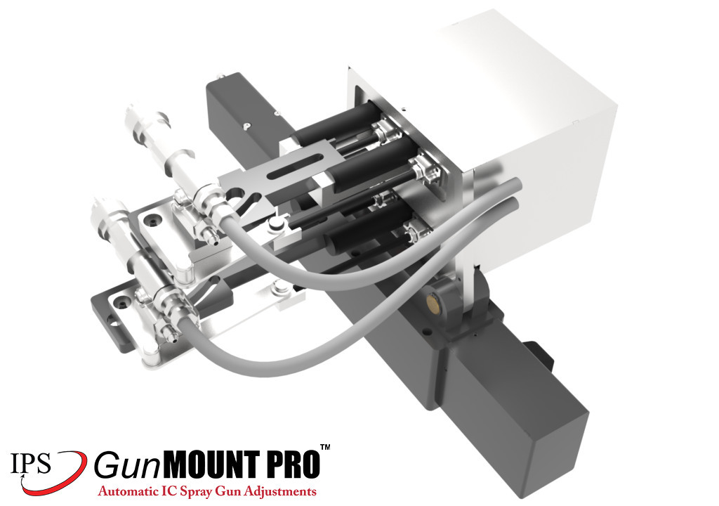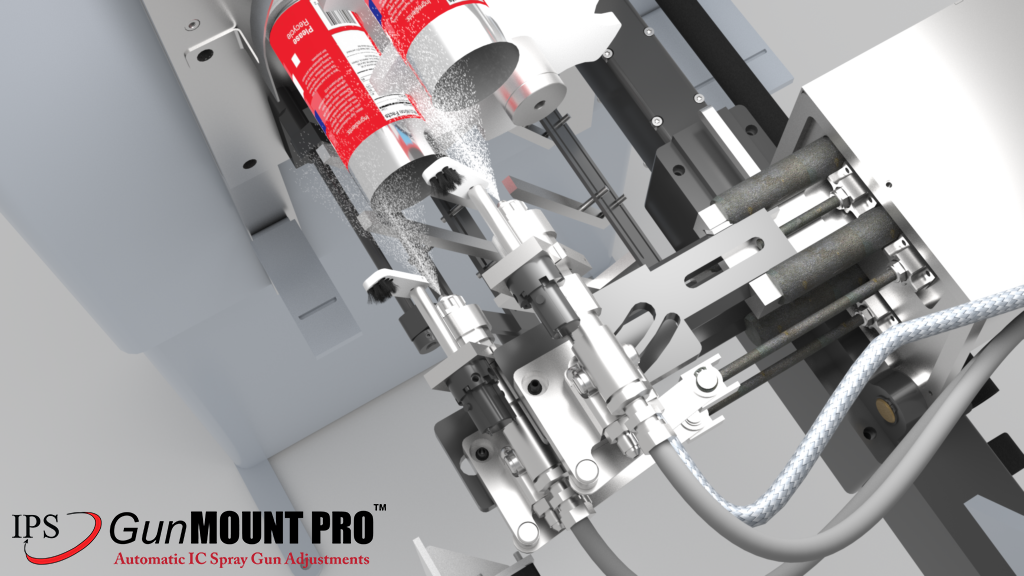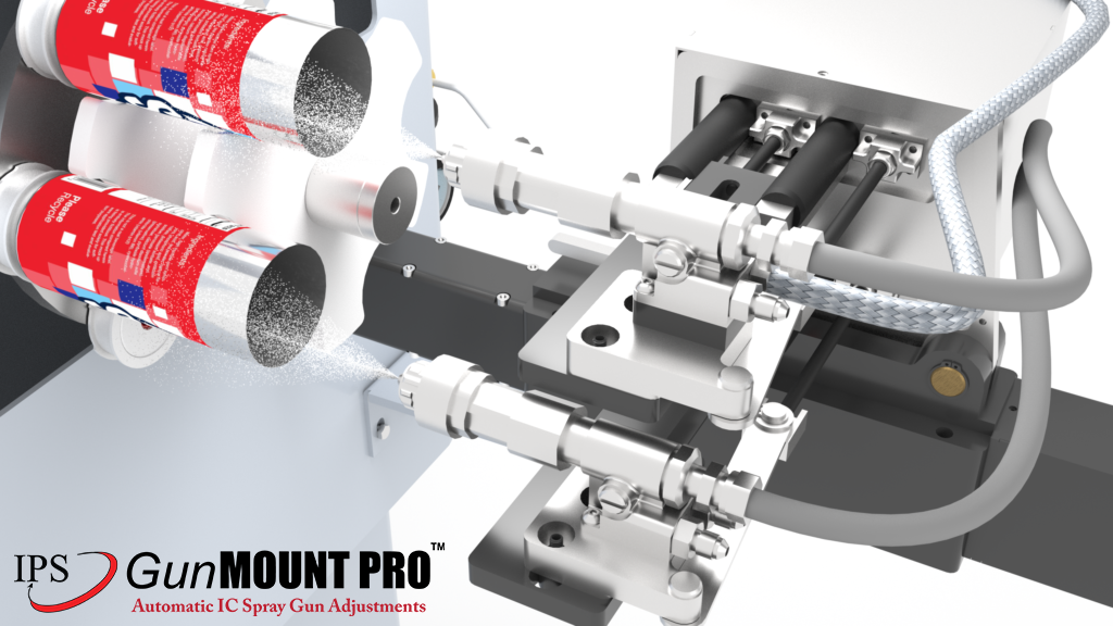 The IPS GunMOUNT PRO™ (Patent Pending) is an IC Spray gun mount that can be added to most IC spray machines available in the can manufacturing industry. The GunMOUNT PRO™ uses servo motors to precisely control the position of each spray gun relative to the can size. It has an HMI that can easily be programmed for various can-size “recipes” to ensure changeover between different can sizes is easy and always accurate. Gun position “recipes” are built around the same spray gun position parameters used by spray gun manufacturers and coating suppliers, making programing and using, simple and easy.