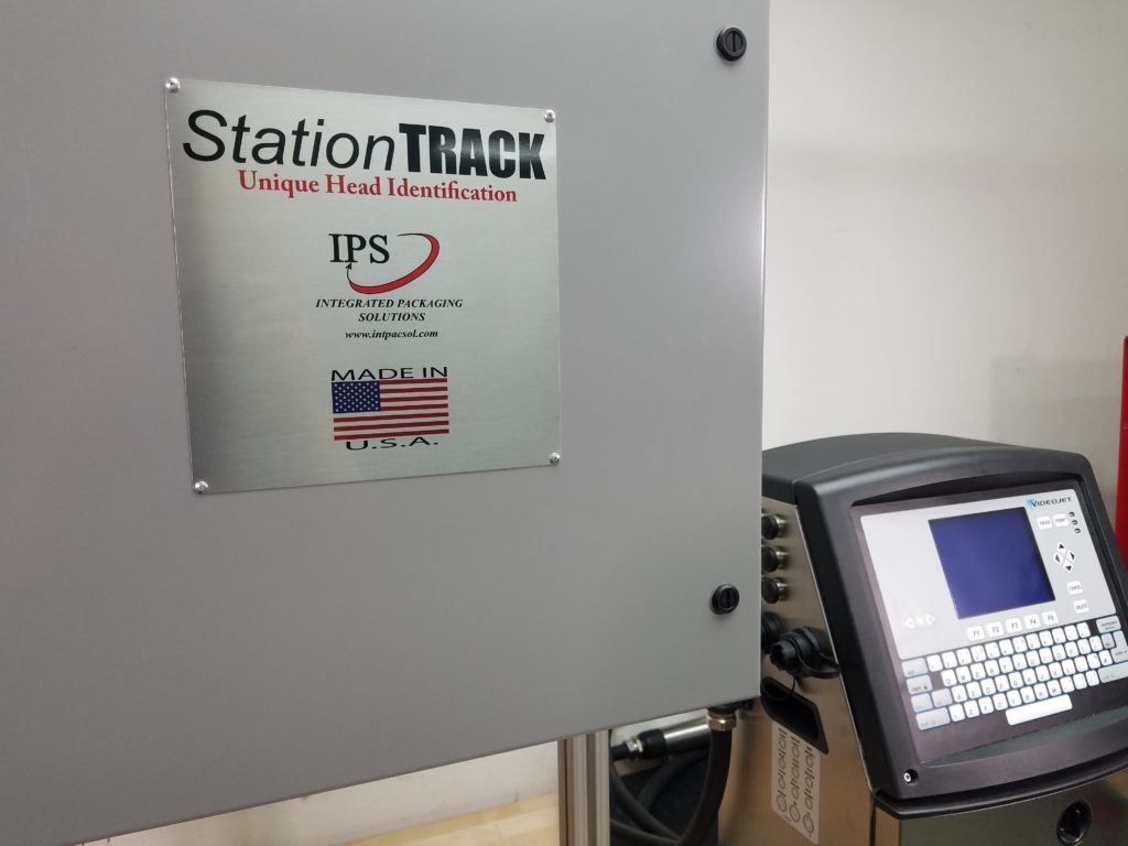 The IPS StationTRACK™ is a fully integrated, digitally printed solution for the unique identification of manufacturing heads for the 2-piece, aerosol and 3-piece can manufacturing industries. The integration of a StationTRACK™ system helps to quickly and easily troubleshoot problems in manufacturing lines where there are multiple (typically rotary) heads. Instead of stopping the entire line and counting cans to arrive at the problematic head, the StationTRACK™ provides a code that identified which specific head the can came from.